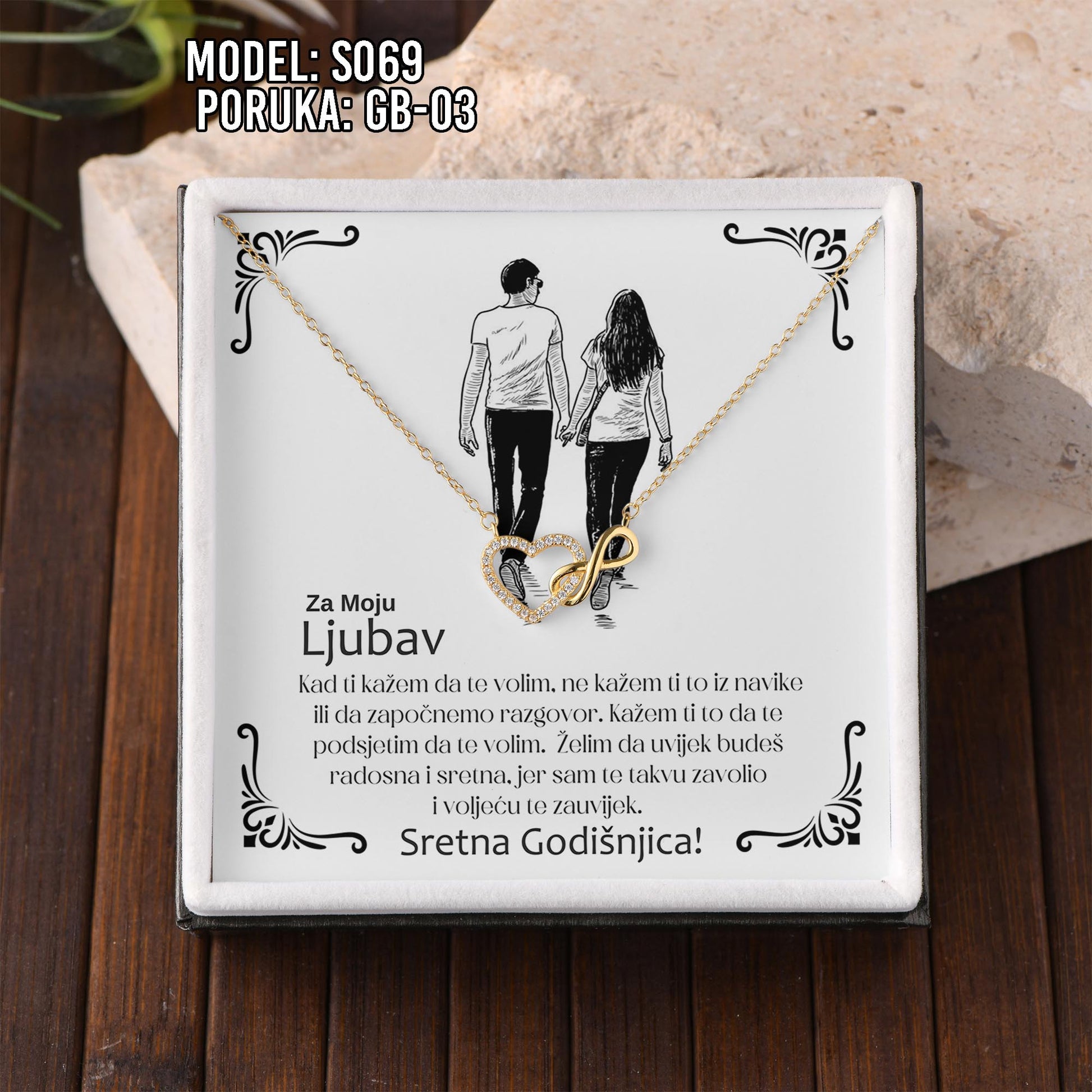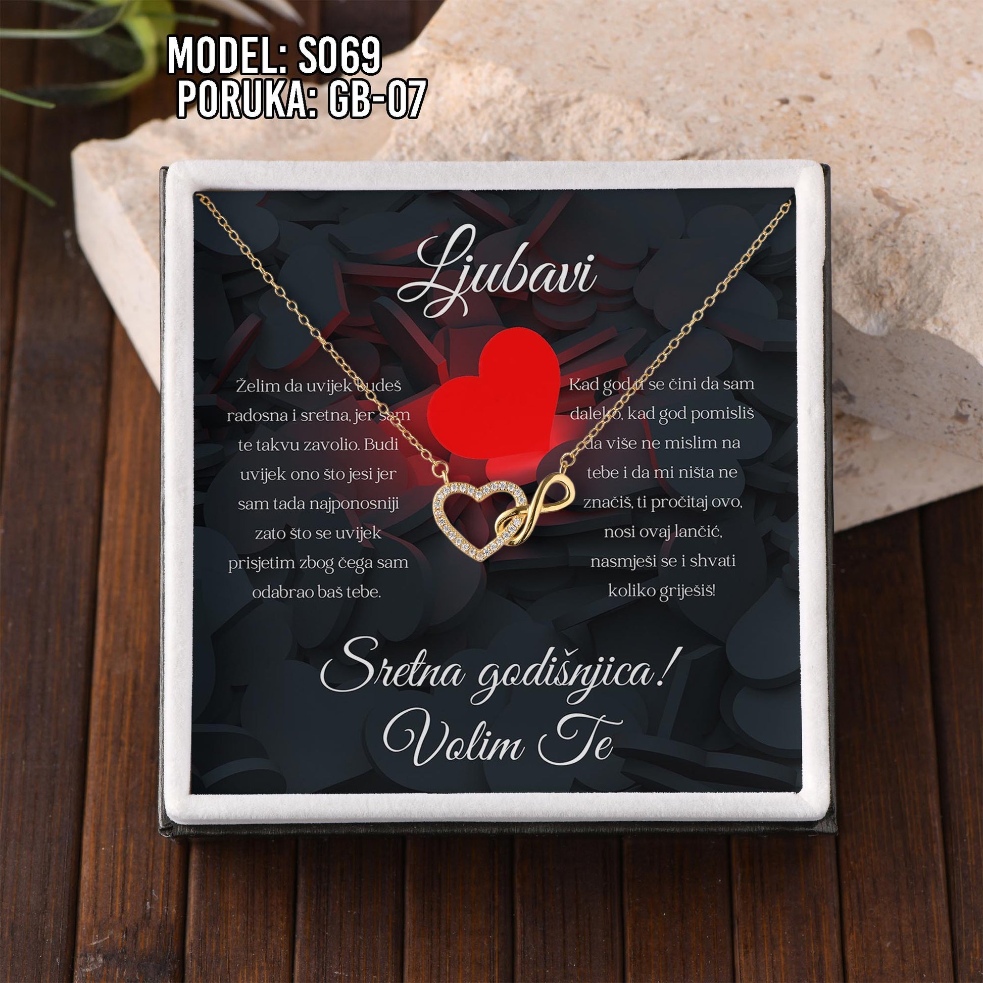 Ovaj lančić simbolizira vječnu ljubav i povezanost. Idealan je za godišnjicu braka ili kao znak pažnje kojim ćete izmamiti osmijeh na njenom licu.