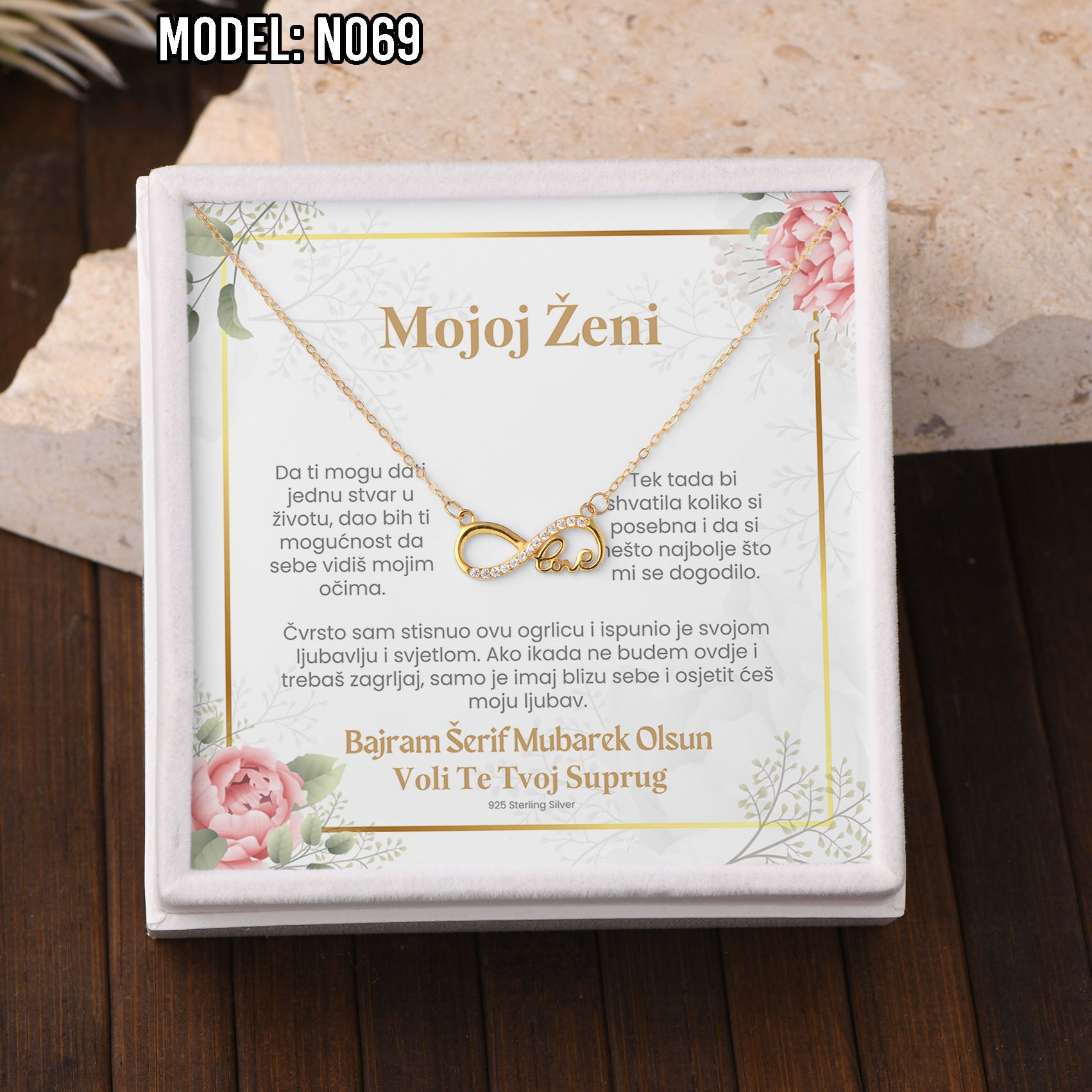 Bajramski poklon za voljenu osobu – ogrlica od 925 srebra sa porukom (18k pozlata)