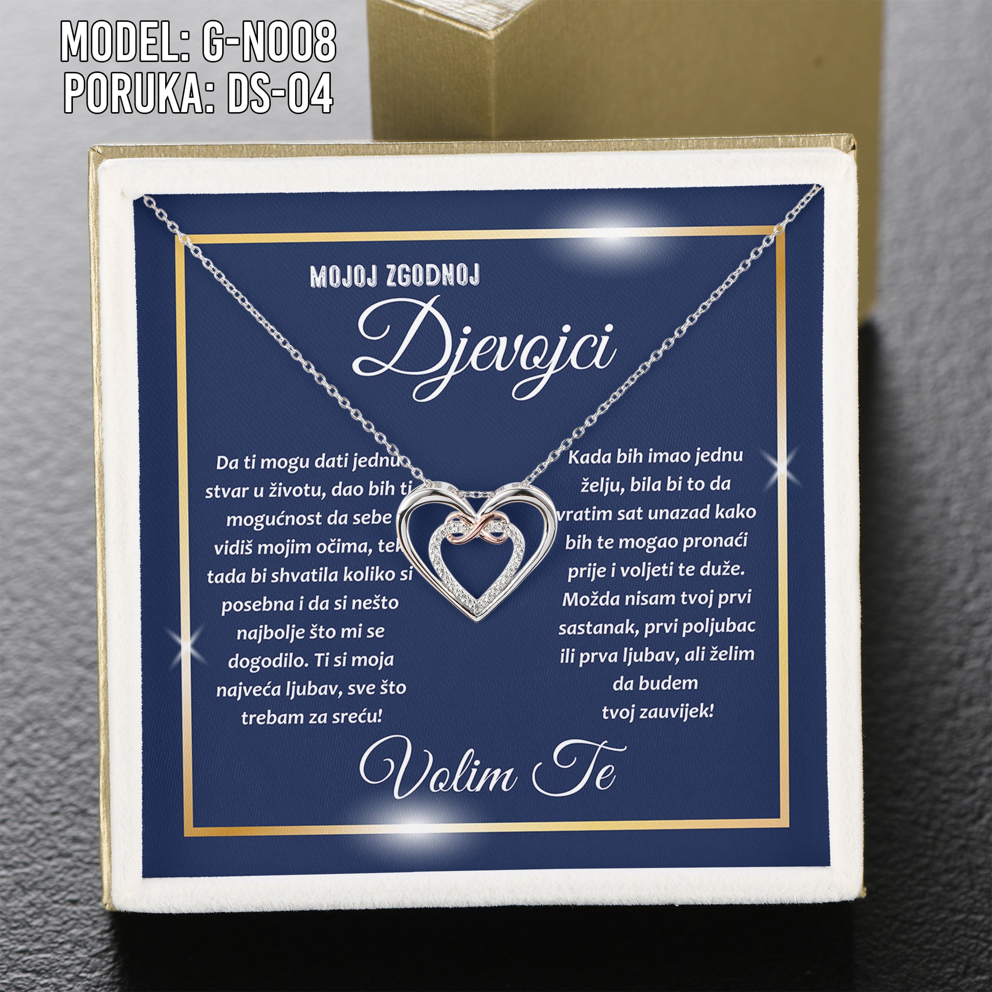 Mojoj Zgodnoj Djevojci - 925 Srebreni Lančić Srce- Poklon za Djevojku sa Porukom Momka