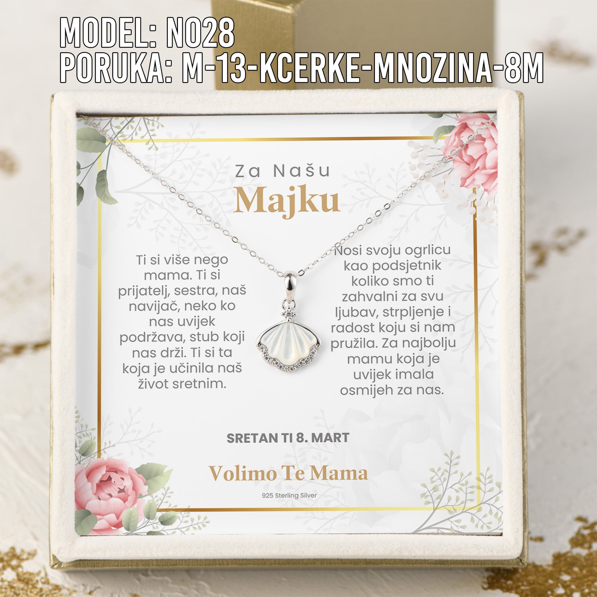 Za Našu Mamu - 925 Srebreni Lančić Školjka- Poklon za Majku za 8. Mart sa Porukom od Kćerki