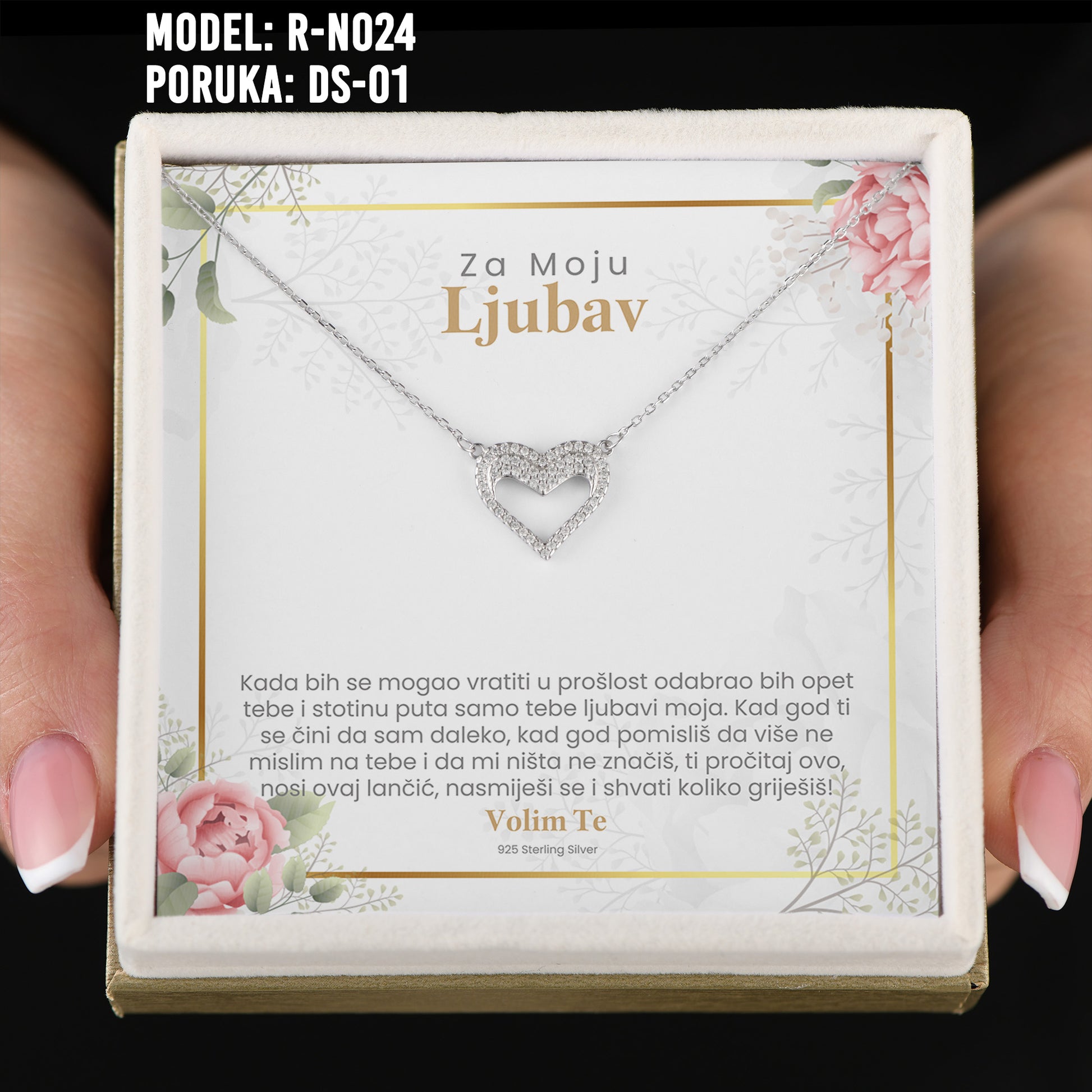 Za Moju Ljubav - 925 Srebreni Lančić Srce - Poklon za Suprugu/Djevojku sa Porukom Volim Te