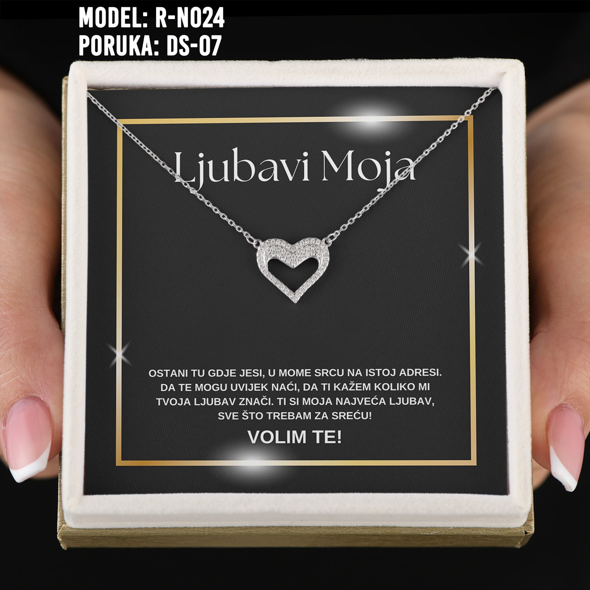 Ljubavi Moja - 925 Srebreni Lančić Srce- Poklon za Djevojku/Suprugu sa Porukom Volim Te