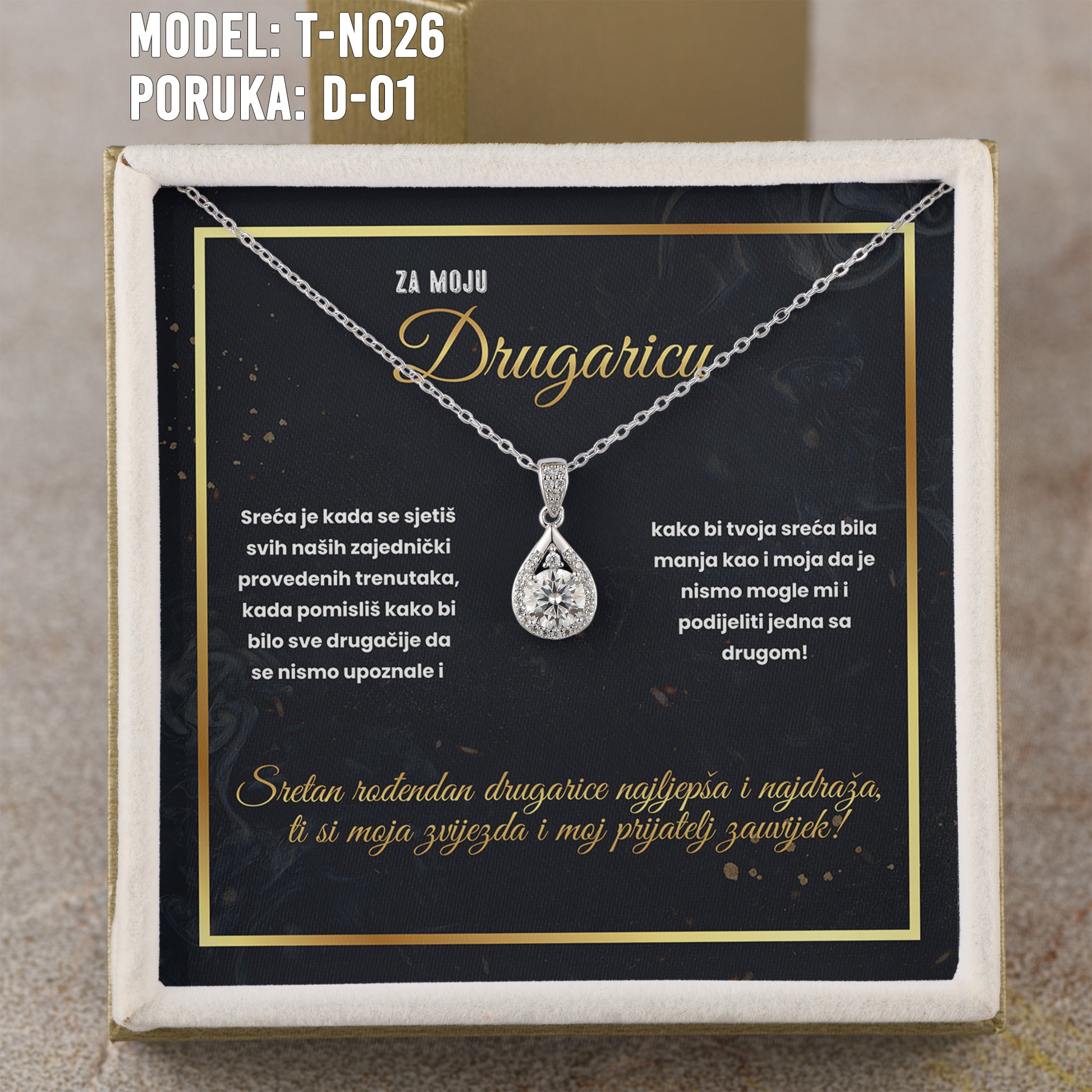 Za Moju Drugaricu - 925 Srebreni Lančić Kapljica Vode - Poklon za Drugaricu sa Poruko Srećan Rođendan