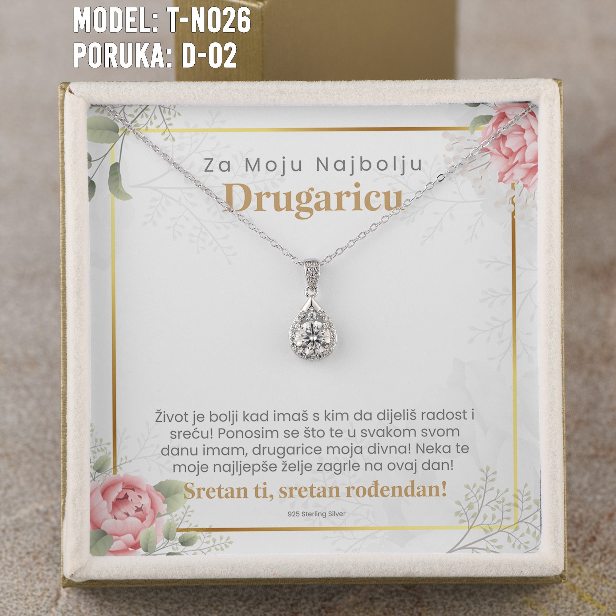 Za Moju Najbolju Drugaricu - 925 Srebreni Lančić Kapljica Vode - Poklon za Drugaricu sa Poruko Sretan Rođendan