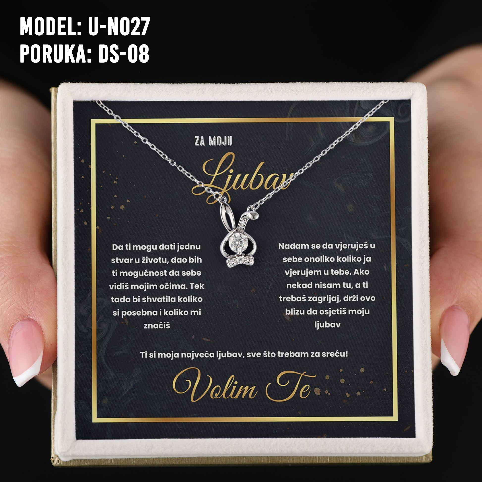 Za Moju Ljubav - 925 Srebreni Lančić Bunny- Poklon za Djevojku/Suprugu sa Porukom Volim Te