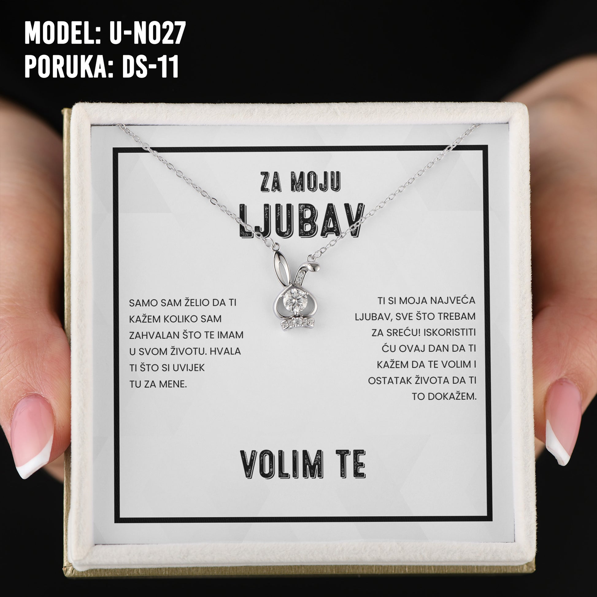 Za Moju Ljubav - 925 Srebreni Lančić Bunny- Poklon za Djevojku/Suprugu sa Porukom Volim Te