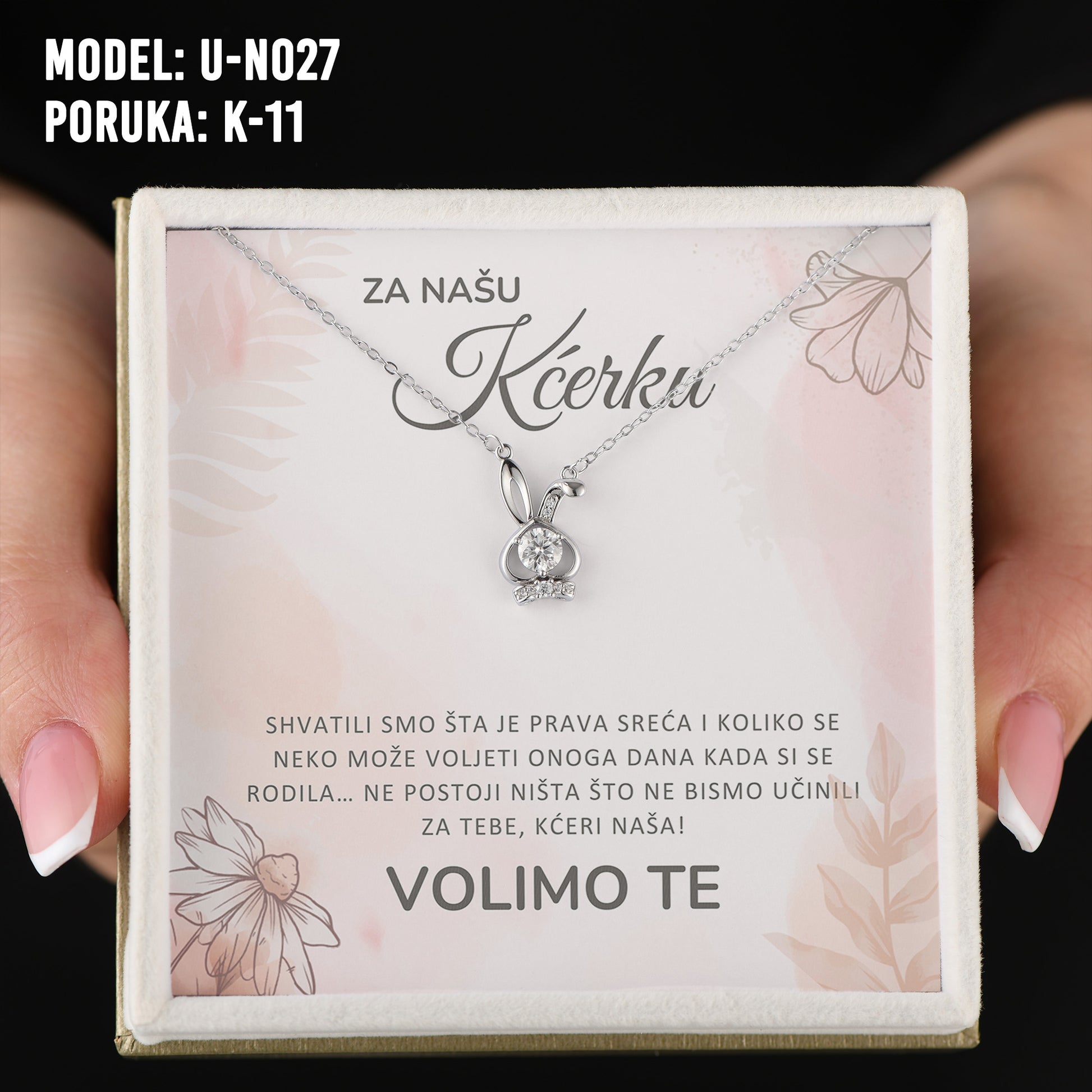 Za Našu Kćerku - 925 Srebreni Lančić Bunny - Poklon za Kćerku sa Porukom Volimo Te