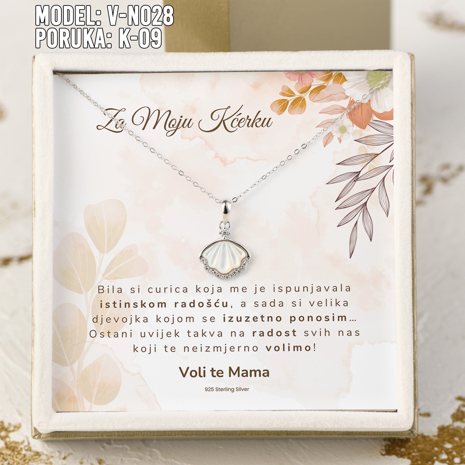 Za Moju Kćerku - 925 Srebreni Lančić Školjka - Poklon za Kćerku sa Porukom od Mame